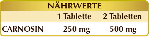 Carnosin-Nahrungsergänzungsmittel, angezeigt in Fällen in denen man die Zufuhr dieser Nährstoffe in der Ernährung erhöhen will. Carnosin ist ein Dipeptid, das in den Muskeln von Tieren vorkommt und durch die Verbindung von zwei Aminosäuren, Histidin und Beta-Alanin, gebildet wird.
