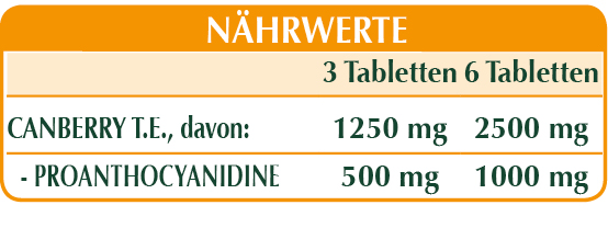 Nahrungsergänzungsmittel auf Basis von amerikanischer Cranberry, das den Abfluss von Körperflüssigkeiten fördert, die Funktion der Harnwege unterstützt, eine wohltuende antioxidative Wirkung hat und zur Regelmäßigkeit der Darmpassage beiträgt.
