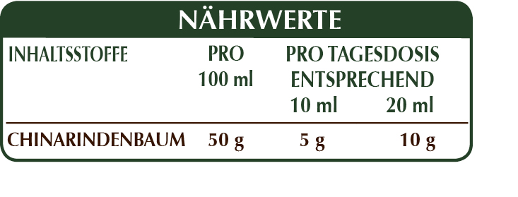 Bidestilliertes pflanzliches Glycerin, reines Wasser, Chinarindenbaum (Cinchona calisaya) Rinde F.G.E.