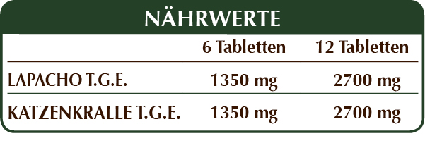 KATZENKRALLE und LAPACHO Gesamt Trocken-extrakt Tabletten