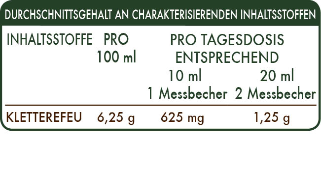 Bidestilliertes pflanzliches Glycerin, reines Wasser, Efeu (Hedera helix) Blätter F.G.E.