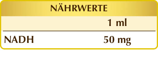 Bidestilliertes pflanzliches Glycerin, reines Wasser, NADH (Nicotinamid-Adenin-Dinucleotid).