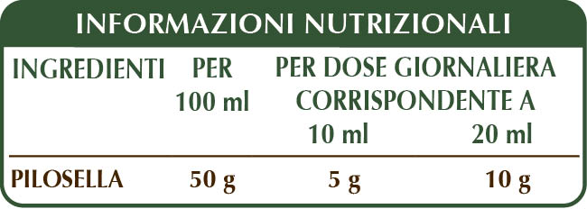 Estratto Integrale Liquido analcoolico ottenuto a partire da: glicerina vegetale bidistillata, acqua pura, pilosella (Hieracium pilosella) erba.
