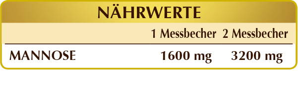 D-Mannose aus Mais, Maltodextrin aus Mais oder Reis.