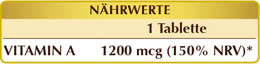 Vitamin A trägt zur Erhaltung normaler Haut, Schleimhäute und Sehkraft bei, fördert einen normalen Eisenstoffwechsel, fördert die normale Funktion des Immunsystems und greift in den Zellspezialisierungsprozess ein.
