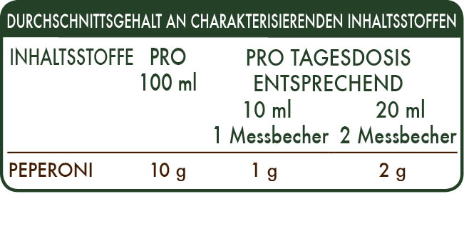 Wir empfehlen die Einnahme von 1 Messbecher (10 ml) verdünnt in heißem oder kaltem Wasser, ein- oder zweimal am Tag zu jeder Zeit (10 bis 20 ml am Tag); umrühren und nach Geschmack süßen. Wenn gewünscht, kann die Tagesdosis in einer Flasche Wasser verdünnt und im Laufe des Tages konsumiert werden. Vor Gebrauch schütteln. Graduierter Messbecher in der Packung enthalten.