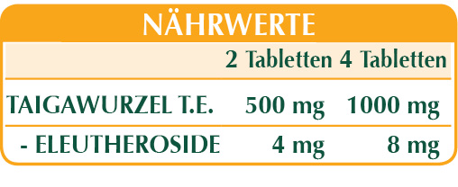 Alkoholfreie Flüssig Gesamt-Extrakt, gewonnen aus: bidestilliertes pflanzliches Glycerin, reinem Wasser, Taigawurzel oder Sibirischer Ginseng (Eleutherococcus senticosus) Wurzeln.