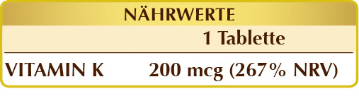 200 mcg Vitamin K (267% NRV) in 1 Tablette.