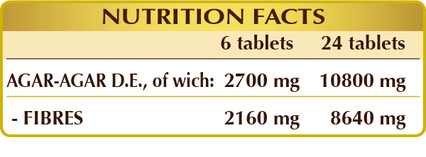 Agar-agar is a soluble fibre that cannot be digested nor absorbed by the gut; it normalises stool volume and consistency, supporting regular bowel movements.