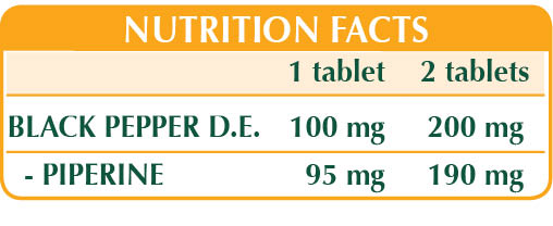 BLACK PEPPERÂ STANDARDIZED EXTRACTÂ 60 Tablets