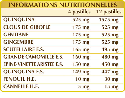 Cinchona helps regulate the sweating process, skullcap maintains the body's natural defences, while feverfew and ginger alleviate localized tension. Furthermore, cloves contribute to a healthy nose and throat, and fennel promotes the fluidity of bronchial secretions.