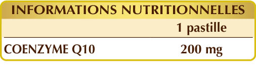 Food supplement of coenzyme Q10, also known as vitamin Q or ubiquinone, the latter term being related to its "ubiquitous" distribution within every cell where it is involved in the functioning of mitochondria for energy production.