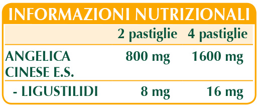 Chinese Angelica (Angelica Sinensis) Root D.E. (standardized to 1% lingustilides), microcrystalline cellulose°, gum arabic°, silicon dioxide°°, corn- or rice-based maltodextrins, plant-based magnesium stearate°°.