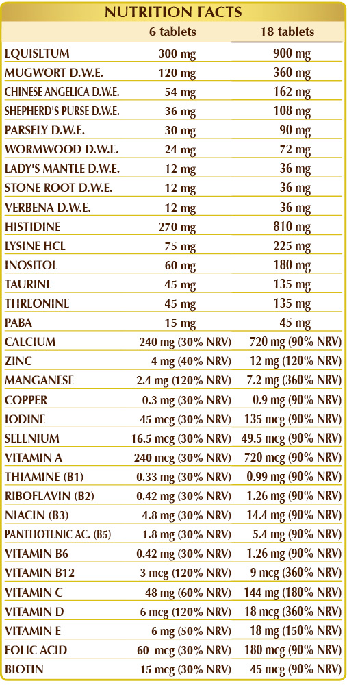 We recommend taking 6 tablets one to three times a day at any time (6 to 18 tablets a day). Close accurately after use.