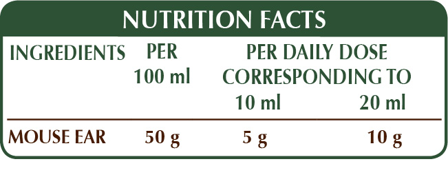 Alcohol-free whole liquid extract obtained from: bi-distilled vegetable glycerine, pure water, mouse ear hawkweed (Hieracium pilosella) herb.