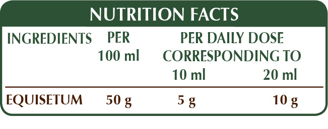 Alcohol-free whole liquid extract obtained from: bi-distilled vegetable glycerine, pure water, equisetum or horsetail (Equisetum arvense) herb.