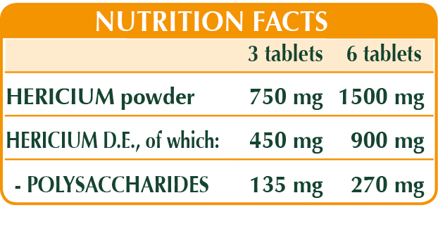 Food supplement containing the extract of hericium, an edible mushroom rich in polysaccharides, also known in Chinese as "monkey’s head".
