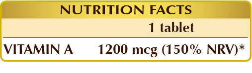 Vitamin A contributes to maintaining normal skin, mucous membranes and vision, promotes normal iron metabolism, it supports healthy function of the immune system and takes part in the cell specialization process.