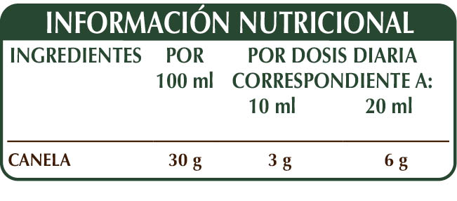 Glicerina vegetal bidestilada, agua pura, canela (Cinnamomum zeylanicum) cortezas E.I.L.