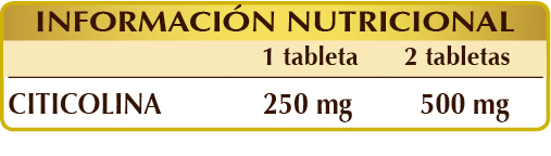 Complemento alimenticio de citicolina, también conocida como CDP-colina, indicado para adultos. La citicolina actúa como precursor en la síntesis de la fosfatidilcolina, un fosfolípido estructural de las membranas celulares.