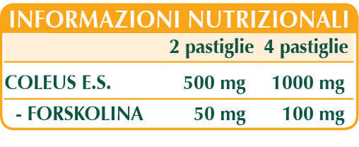 El coleus forskohlii favorece el equilibrio del peso corporal, actuando como complemento alimenticio coadyuvante en dietas hipocalóricas para bajar de peso. Además, el coleus estimula la función digestiva, contribuye a la buena salud de las vías respiratorias, regula la presión arterial y ayuda al correcto funcionamiento del aparato cardiovascular.
