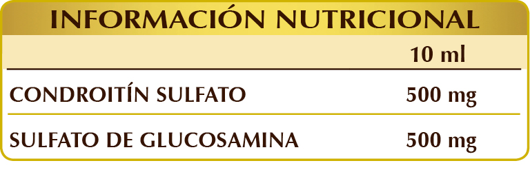 Complemento alimenticio de condroitín sulfato y glucosamina sulfato, dos componentes constitutivos de los tejidos cartilaginosos.