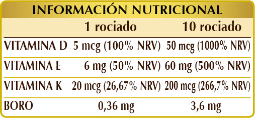 10 rociados contienen el máximo de vitaminas D, E y K y de boro.