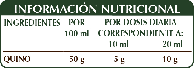 Glicerina vegetal bidestilada, agua pura, quino (Cinchona calisaya) cortezas E.I.L.