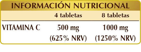 La vitamina C favorece el metabolismo energético reduciendo el cansancio y la fatiga, protege las células contra el estrés oxidativo y regenera la forma reducida de la vitamina E. Contribuye al buen funcionamiento del sistema inmunitario y del sistema nervioso y a conservar una correcta función psicológica. Mejora la absorción del hierro y estimula la formación del colágeno ayudando a mantener la buena salud de los vasos sanguíneos, los huesos, los cartílagos, la piel, los dientes y las encías.