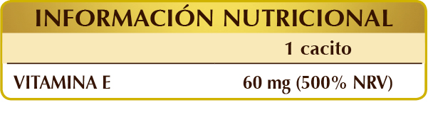 Vitamina E de origen vegetal (acetato de D-α-tocoferol), maltodextrinas de maíz o arroz.