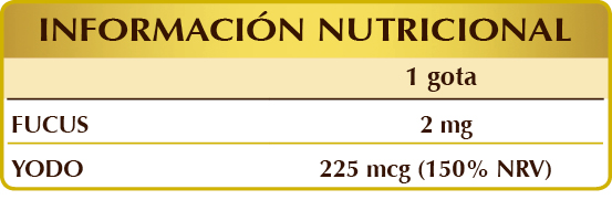 Glicerina vegetal bidestilada, agua pura, fucus o sargazo vejigoso (Fucus vesiculosus) talo (alga) E.I.L., fructosa, yoduro de potasio.