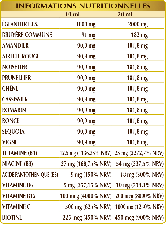NRV = Valeur Nutritionnelle de Référence.
