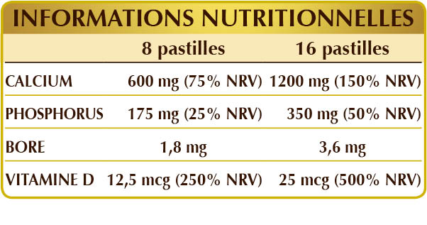 *Effet bénéfique qui peut être obtenu avec une prise journalière d'au moins 1200 mg de calcium, provenant de toutes les sources.