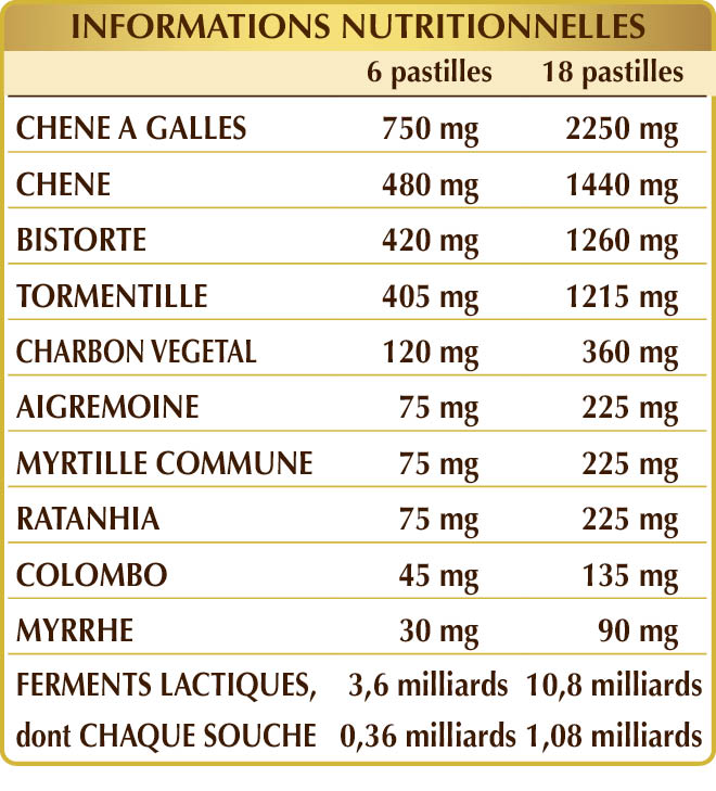 Tableau nutritionnel