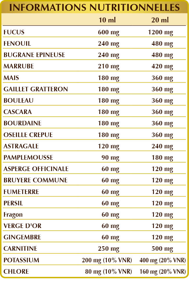 Tableau nutritionnel