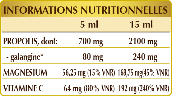 3 mésurettes (15 ml) contiennent en moyenne: 1,42 g de chlorure de magnésium hexahydraté qui correspond à 168,75 mg (45% VNR) de magnésium.