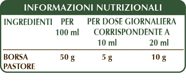 Estratto Integrale Liquido analcoolico ottenuto a partire da: glicerina vegetale bidistillata, acqua pura, borsa pastore (Capsella bursa-pastoris) erba.