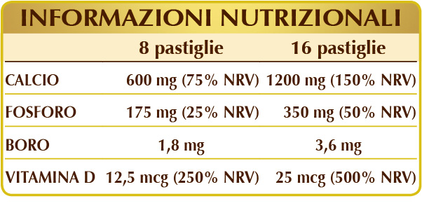 *Effetto benefico ottenibile con l’assunzione quotidiana di almeno 1200 mg di calcio, da tutte le fonti.
