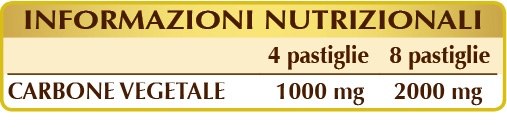 *L’effetto benefico è ottenibile con l’assunzione di almeno 1 g di carbone vegetale 30 minuti prima del pasto e di 1 g subito dopo.