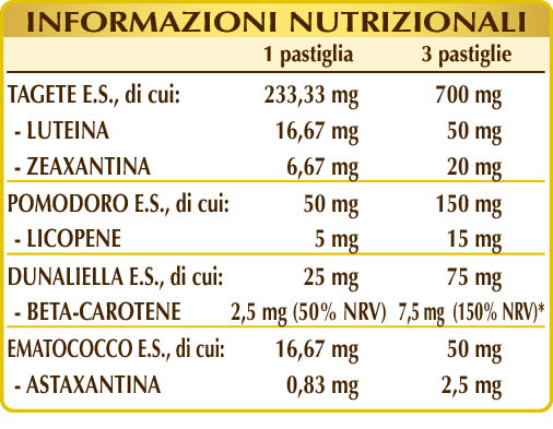 *corrispondente a 1200 mcg (150% NRV) come retinolo equivalente (vitamina A).