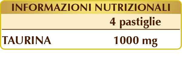 Integratore alimentare di taurina, aminoacido coinvolto in numerosi processi metabolici dell’organismo tra cui la sintesi degli acidi biliari.